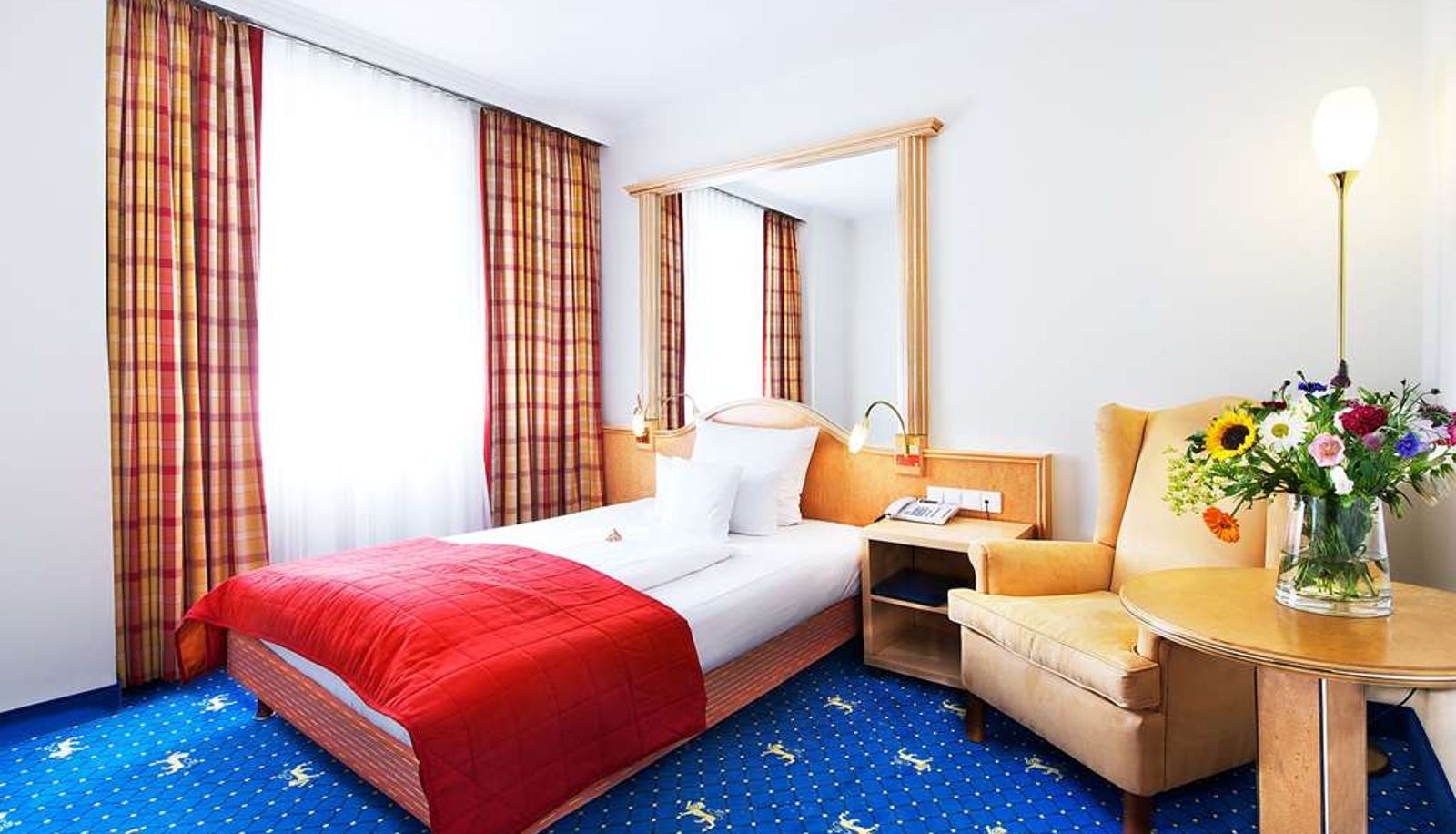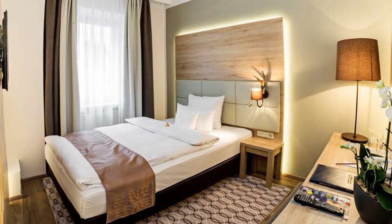 This 4-star hotel, renovated in 2016, is located at Munich Central Station. The pedestrian zone with the best shopping opportunities is less than a 5-minute walk away. We welcome you to the heart of Munich! The Oktoberfest is also within a 10-minute walk. Enjoy our bar and the courtyard terrace during the summer. The rooms are designed in a Bavarian-modern style. Soundproof doors and windows ensure a peaceful night's sleep. Our newly renovated rooms feature individual air conditioning, entertainment with LED TVs, and speakers in the bathroom. Please note that our standard rooms do not have their own air conditioning. You can enjoy free high-speed Wi-Fi. The elegant bathrooms offer exclusive toiletries as well as an XXL shower or bathtub.